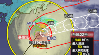 情報提供・お知らせ 台風22号(ハーロン)について ウエザーニュースによれば、非常に強い台風22号(ハーロン)は、10月9日(木)4時には青ヶ島付近を進んでいるとみられます。青ヶ島は台風の目に入り、八丈島は暴風域に入って活発な雨雲がかかっています。厚木市は強風域に入っています。房総半島など関... 2025.10.09 情報提供・お知らせ