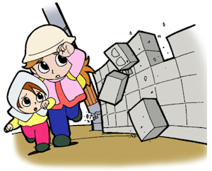 - ブロック塀,門柱,自動販売機などは倒れやすいので,特に注意しましょう。