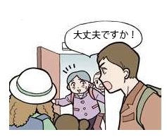 - お年寄りや体の不自由な人,けが人などに声を掛け,みんなで助け合う。