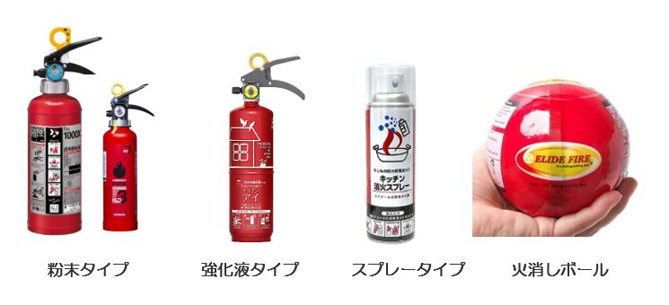 また、スプレータイプには潤滑剤入りの水を使用したものと、二酸化炭素を使用するものがあります。潤滑油入りの水を使用した商品はストーブや天ぷら油からの出火に向いているタイプです。ただし、ハロンガスが使用されているものは再燃する可能性があるので、天ぷら油火災には使用してはいけません。