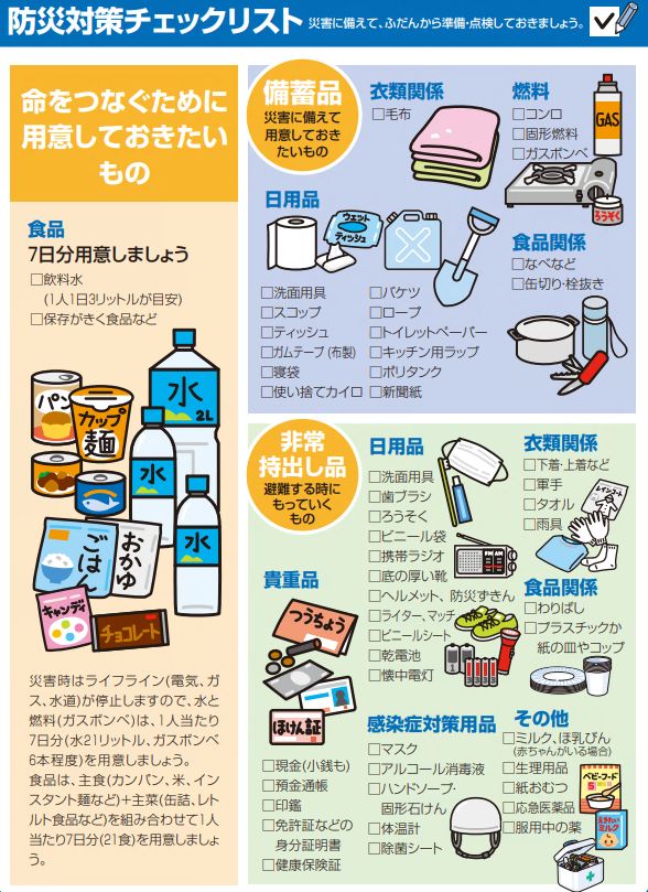⇒ 防災備蓄品を用意しよう